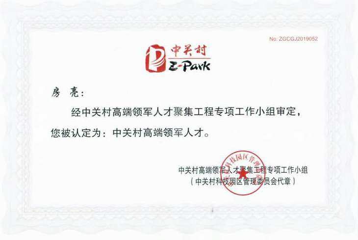 这一次房亮博士获得2019年度中关村高端领军人才的殊荣,不仅是对房亮博士创业领军能力的认可,也是对国科开云官方站手机网站登录入口-开云online(中国)未来发展的认可。